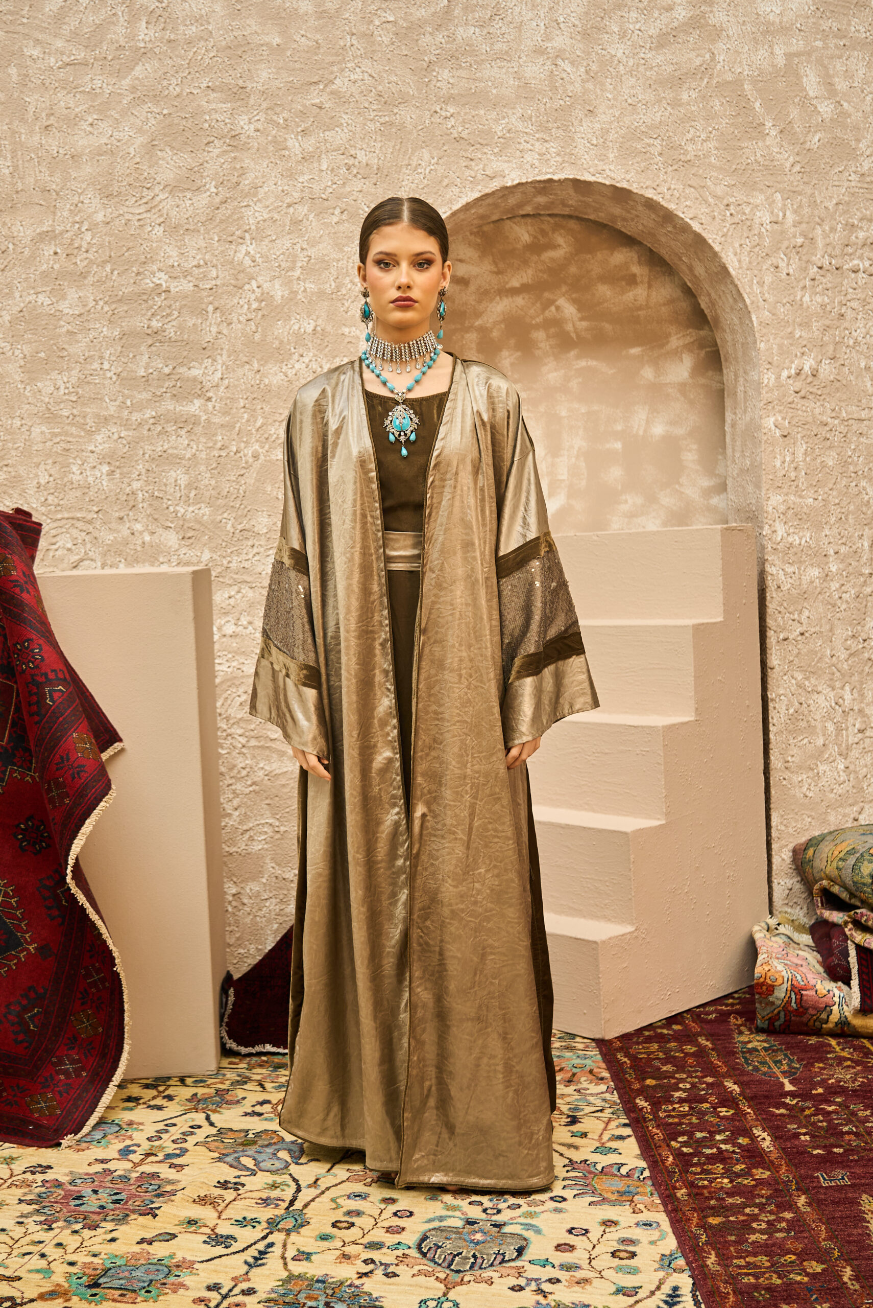 Bronze Echo is a luxurious two-piece set designed with rich desert-inspired tones and elevated textures.